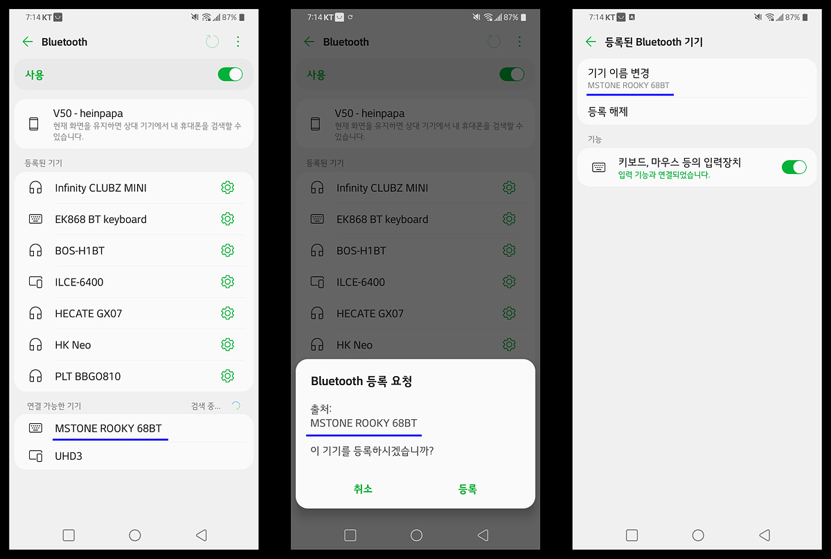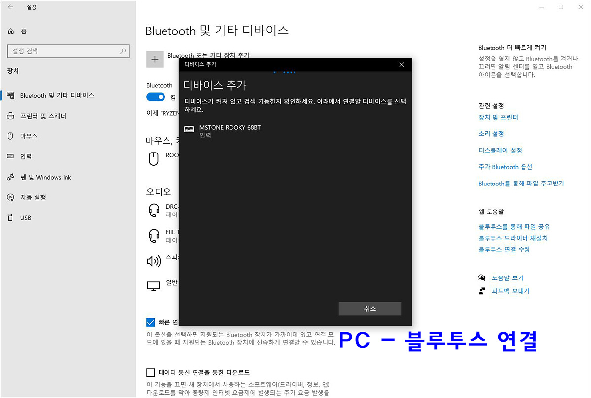 블루투스로 사용을 할 때는 바닥면의 스위치를 On으로 켜야 합니다.