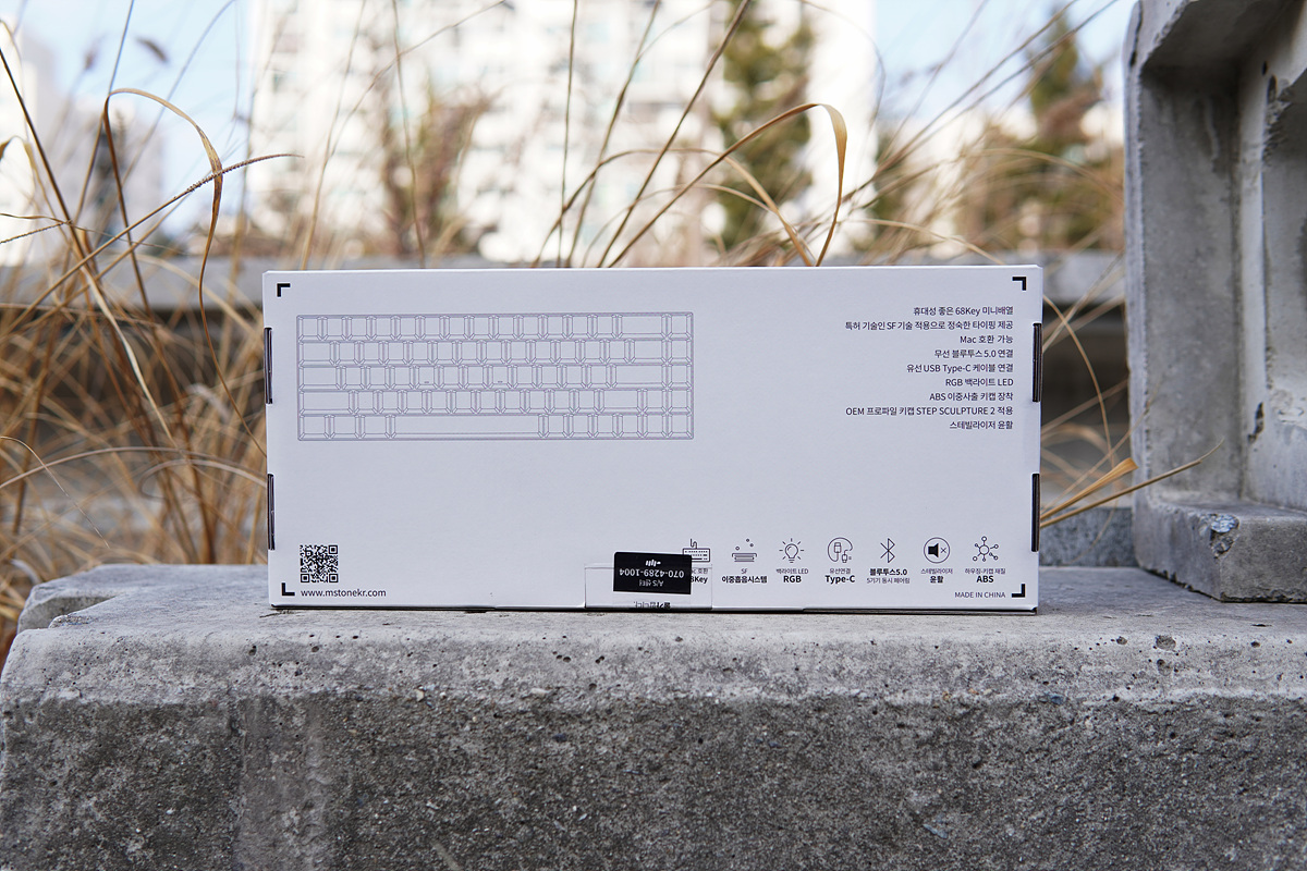 68 키 배열이라 박스의 크기도 작은 편이며 키보드의 스펙이나 특징들이 자세하게 나와있습니다. 박스의 크기에 비해 무게가 제법 묵직한 편이었습니다.