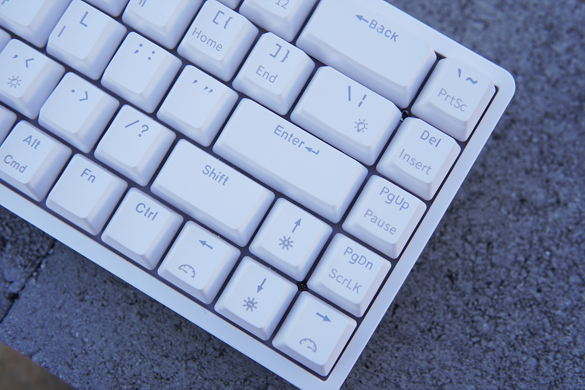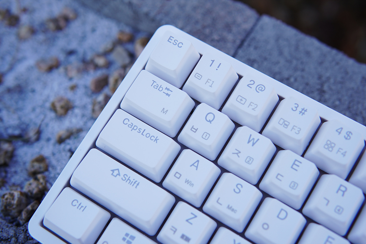 Fn 키와 조합으로 사용하는 키나 페어링 등 여러 가지 기능들은 모두 키캡에 각인이 되어있어서 미니 배열에 익숙하지 않은 사용자들도 쉽게 확인할 수 있습니다.