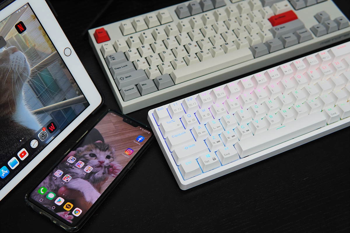 안드로이드, IOS뿐 아니라 Windows에서도 블루투스로 페어링 할 수 있습니다. 페어링이 되어있는 기기를 변경할 때는 키보드 전체가 깜빡거리며 2초 이내로 상당히 빠르게 전환이 됩니다.