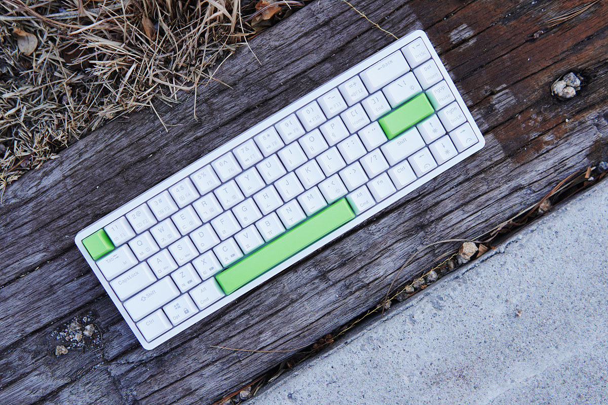 확실히 포인트 키캡을 사용했을 때가 훨씬 더 좋은 거 같습니다. 기본이 화이트라서 초록색뿐 아니라 다른 색의 포인트 키캡도 잘 어울릴 거라 생각됩니다.