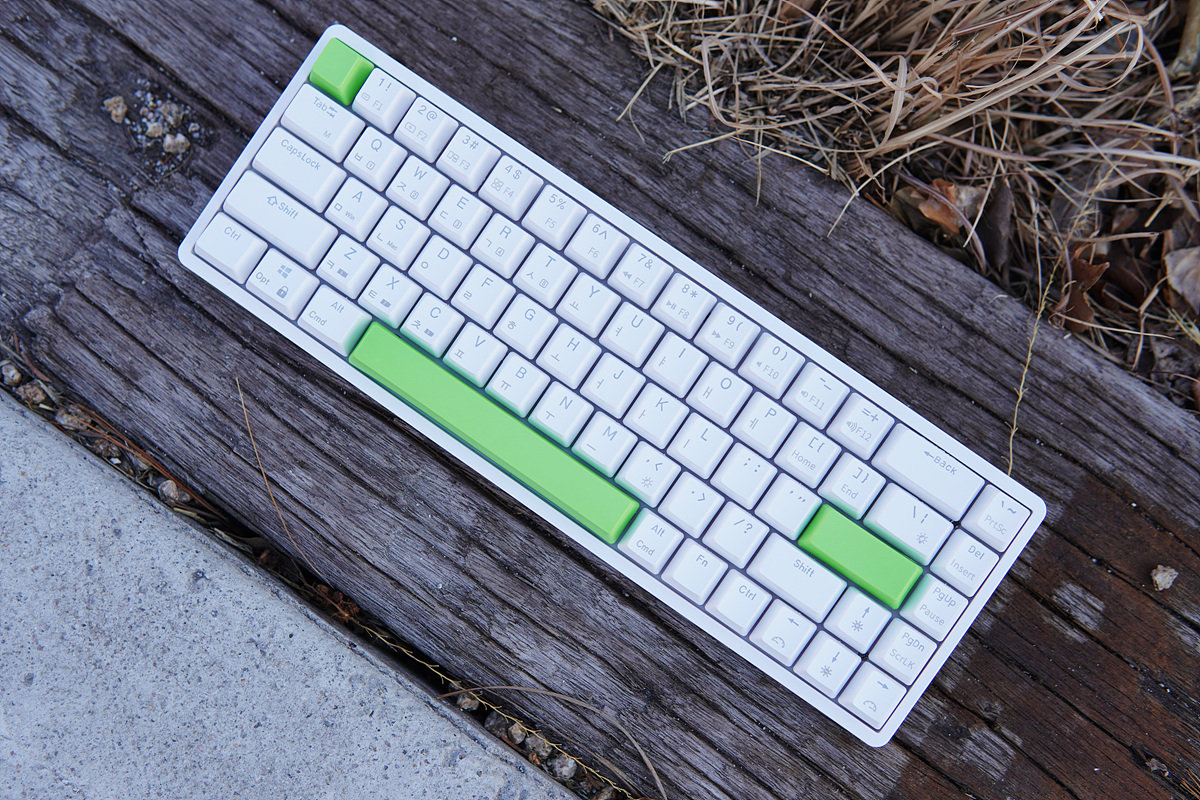 확실히 포인트 키캡을 사용했을 때가 훨씬 더 좋은 거 같습니다. 기본이 화이트라서 초록색뿐 아니라 다른 색의 포인트 키캡도 잘 어울릴 거라 생각됩니다.