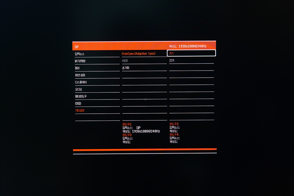 3. HDMI 2.0으로 240Hz 고주사율 사용 (HDMI 1번 포트)