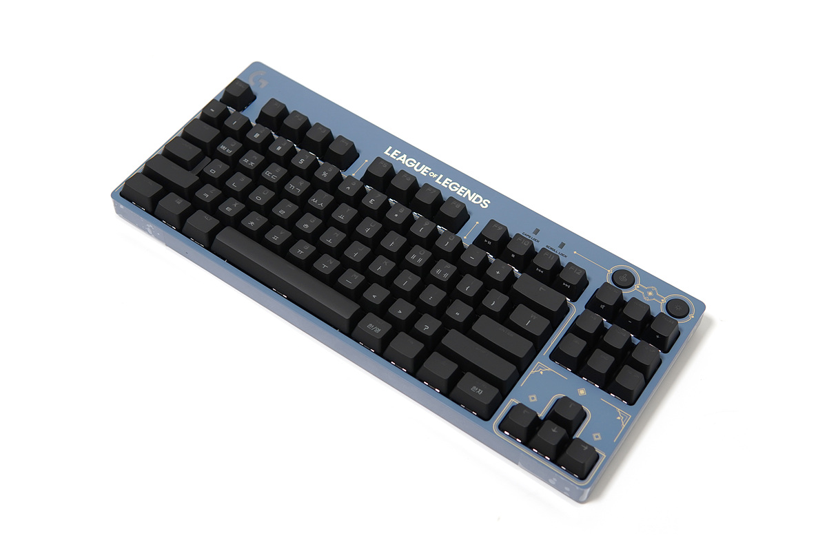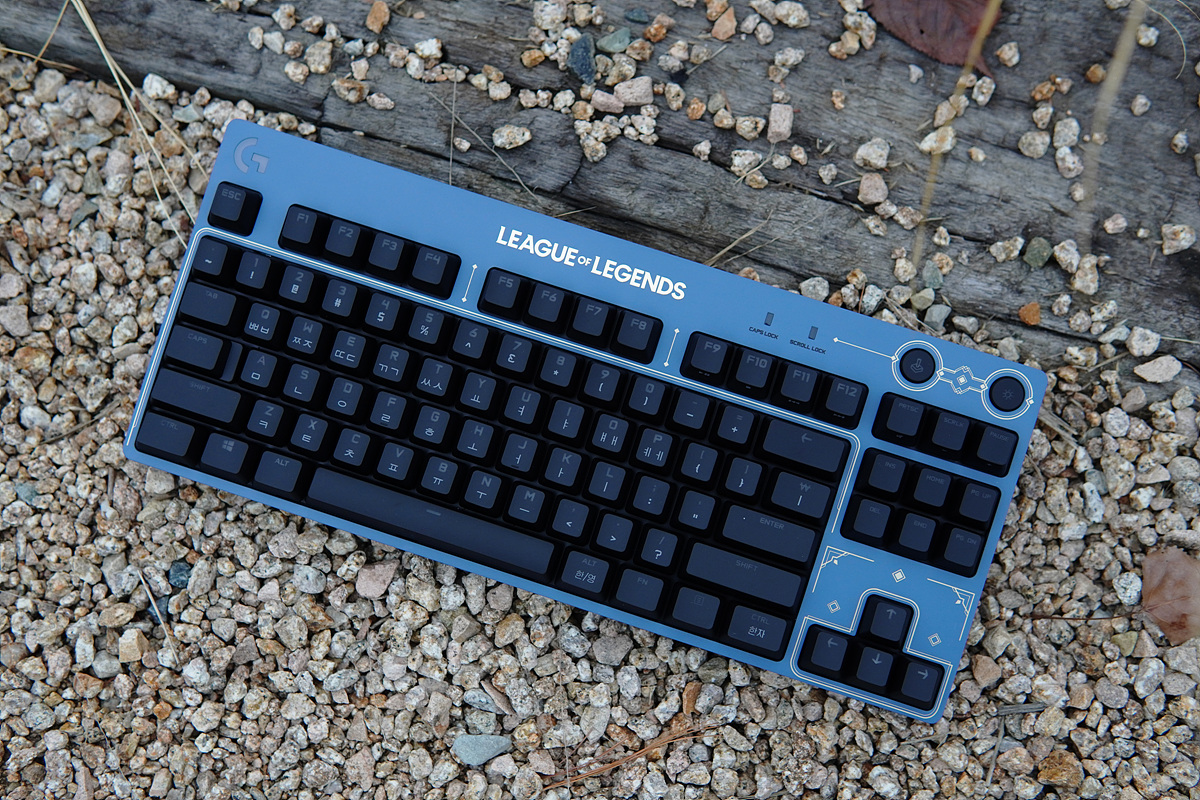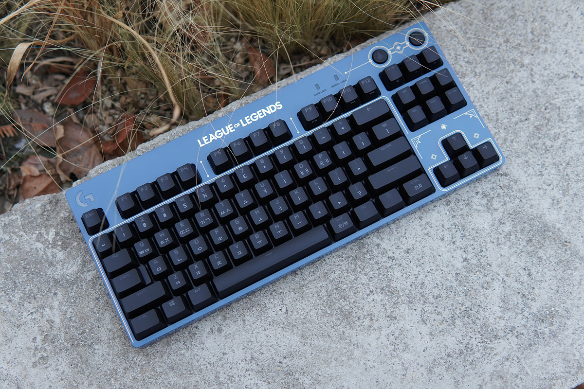 키보드는 사진으로 보던 것보다 훨~~씬 더 멋졌습니다. 딥블루 & 골드 라인의 포인트로 얼마 전 넷플릭스로 방영했던 아케인(ARCANE)의 마법 공학이 생각나더군요. 롤을 좋아하지 않는 사용자들이라도 디자인만큼은 인정할만한 수준이었습니다.