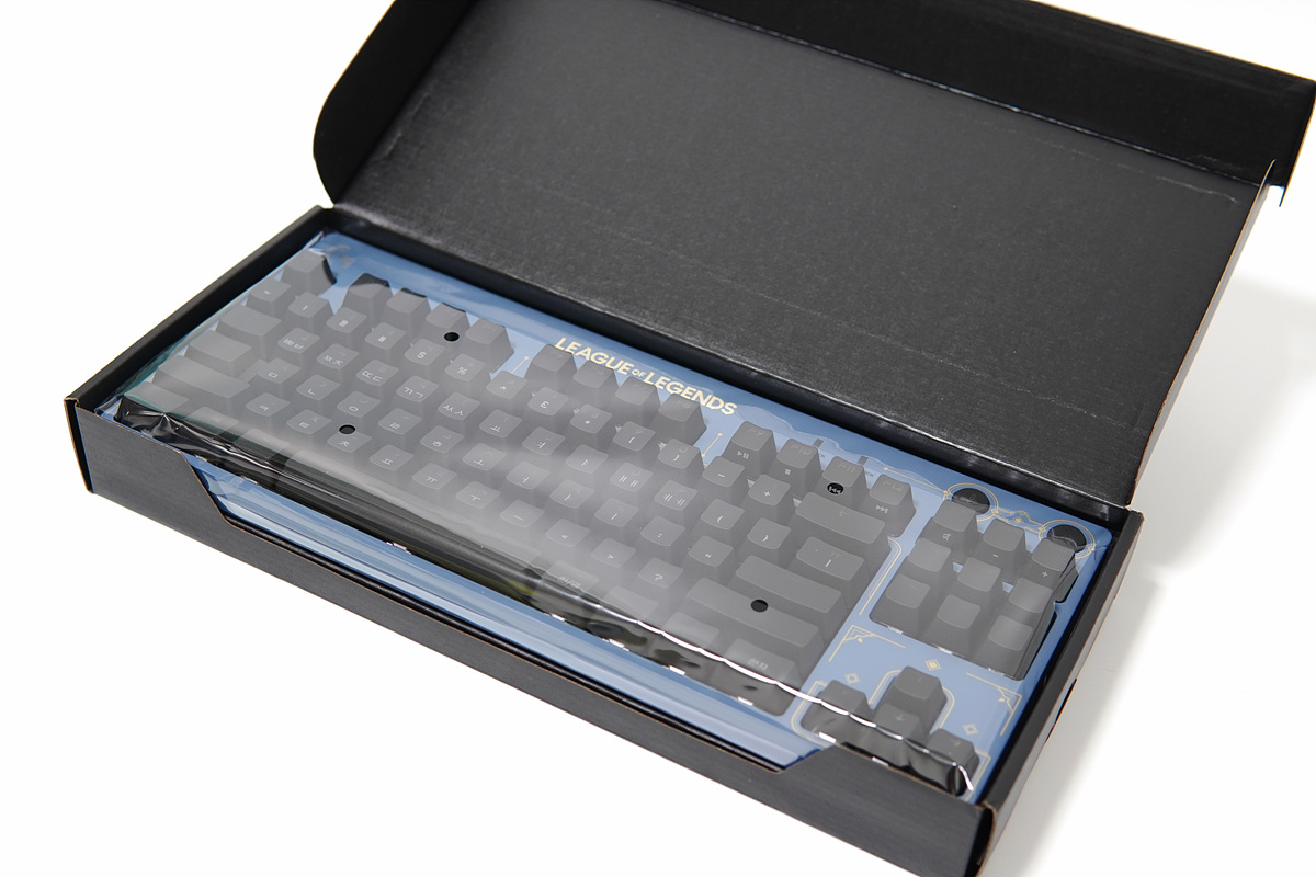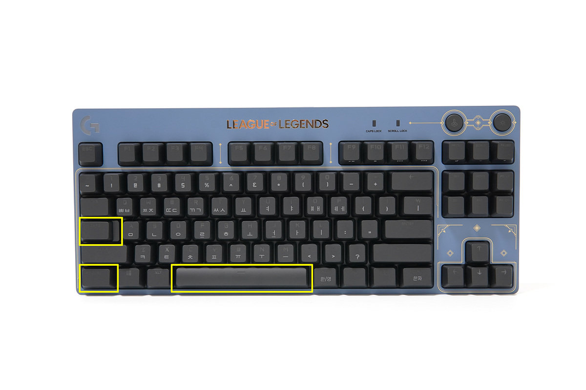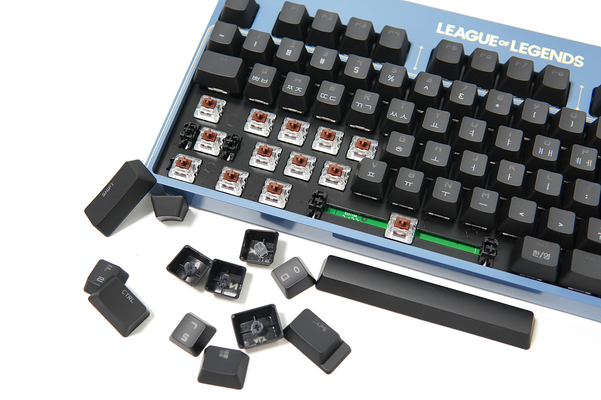 LoL 에디션이라는 말이 부족하지 않을 정도로 키보드 상판이나 측면까지 모두 포인트를 주고 있습니다. 디자인만큼은 정말 인정이라는 말이 나올 정도로 좋았습니다.