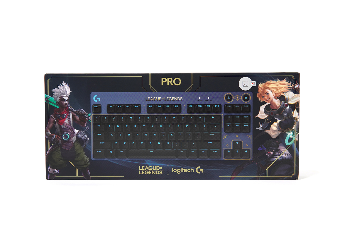 롤 챔피언(캐릭터)이 있어서 기존의 로지텍 제품과는 확실하게 다른 느낌입니다. 키보드의 가장 큰 특징인 스위치와 배열(텐키리스)등이 크게 표시되어 있는데 저는 작은 글씨인 "Play to Win"이라는 문장이 가장 눈에 들어오더군요.