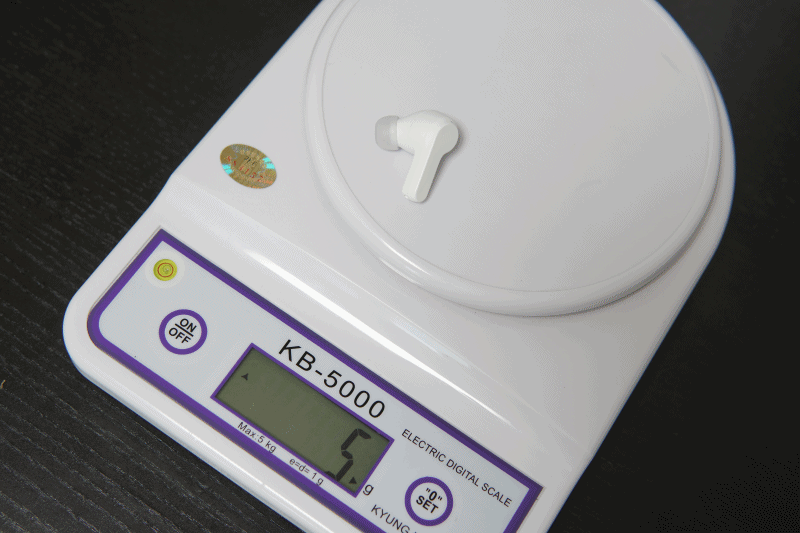 이어 버드의 한 개는 약 5g으로 케이스까지 합친 전체 무게는 51g으로 보기보다 상당히 가벼운 편이었습니다. TWS 타입의 블루투스 이어폰에서 가벼운 무게는 곧바로 착용감으로 이어지기 때문에 무엇보다 중요한 부분이죠. 케이스 역시 주머니에 넣어도 부담이 되지 않는 크기와 무게였습니다.
