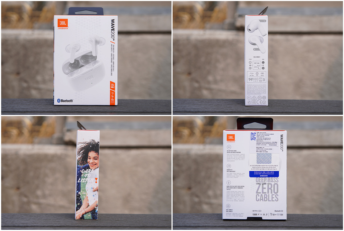 TWS 블루투스 이어폰들이 필수처럼 여겨지고 이제는 한 사용자가 여러 개의 이어폰을 사용하다 보니 이런 사용자들을 위해서 가격을 낮춘 보급형 라인의 제품들이 활발하게 출시되고 있습니다. 이런 현상들은 중소업체들뿐 아니라 잘 알려진 대형 브랜드들도 마찬가지로 기존에 제품들을 조금 더 변형하거나 외형이나 기능들을 업그레이드해서 출시하고 있습니다. 이번 시간에 소개하는 JBL WAVE200 역시 이전에 판매되던 WAVE100의 후속 제품으로 이어 버드와 케이스의 디자인 모두 개선이 된 제품입니다.
