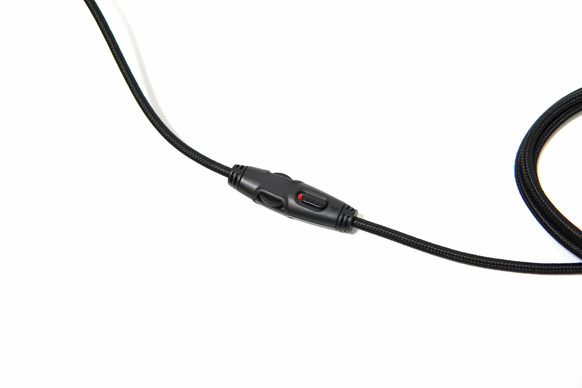 Cloud Alpha의 볼륨 조절과 마이크 음소거를 위한 리모컨은 케이블에 부착이 되어 있습니다. 개인적으로는 케이블보다는 이어컵에 부착되어 있는 방식을 좋아하는데 다른 제품들에 비해 이 리모컨의 크기나 무게가 가벼운 편이라 걸리적거리지는 않았습니다. 볼륨 조절 다이얼은 전형적인 아날로그 방식으로 되어있으며 사진처럼 빨간색으로 스위치를 조절하면 마이크가 음소거됩니다.