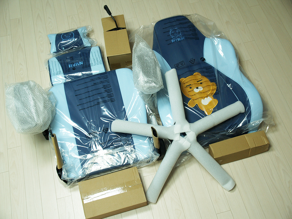 설명서의 순서대로 팔걸이를 고정하고 라이언이 있는 등받이 부분을 조립하면 됩니다.