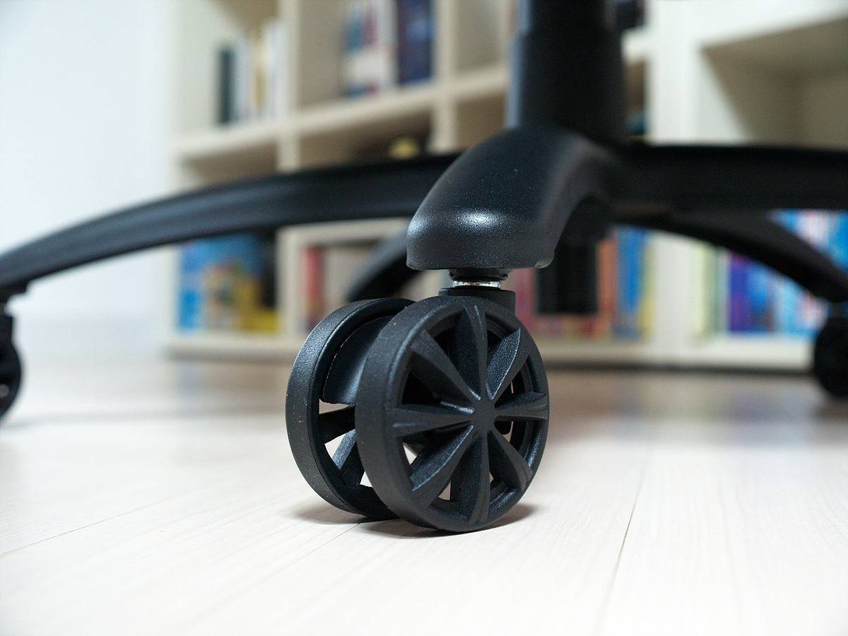 제닉스 라이언 의자의 바퀴 지름은 65mm로 다른 의자들에 비해 조금 더 큰 편입니다.