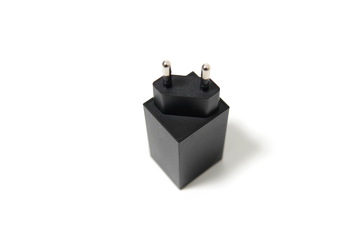 플러그 부분은 대각선으로 각도를 주어서 디자인뿐만 아니라 콘센트나 멀티탭에 사용하더라도 다른 기기와의 간섭을 피할 수 있습니다. 개인적으로 플러그를 접지형으로 했으면 좀 더 좋았을 거 같습니다. 이럴 경우 단가가 조금 더 높아지겠지만 아무래도 전자기기에서 접지는 항상 강조가 되는 부분이니까요.