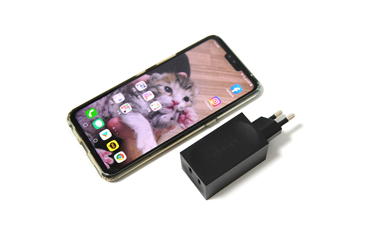 스마트폰 한 개만 충전하는 일반적인 충전기와 큰 차이는 없습니다. 가로, 세로의 차이는 그리 크지 않지만 높이부분만 조금 차이가 납니다.