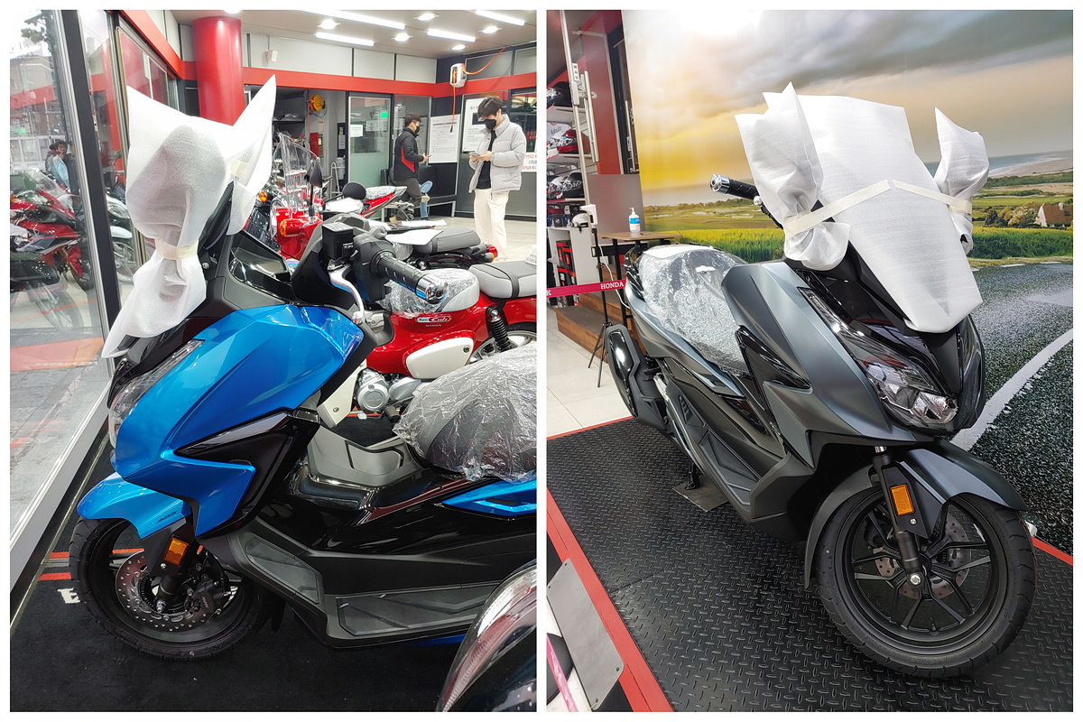 개인적으로 PCX보다는 포르자가 훨씬 더 맘에 드는데 이건 예약을 해도 최소 3개월정도는 기다려야 된다고 합니다. 매장에 전시되어있는 제품이 없어서 앉아보지는 못했네요. PCX보다 시트 높이와 폭이 더 넓어서 발 착지성은 더 나쁠 거 같습니다. 포르자를 사면 과연 잘 탈 수나 있을지 궁금하네요.