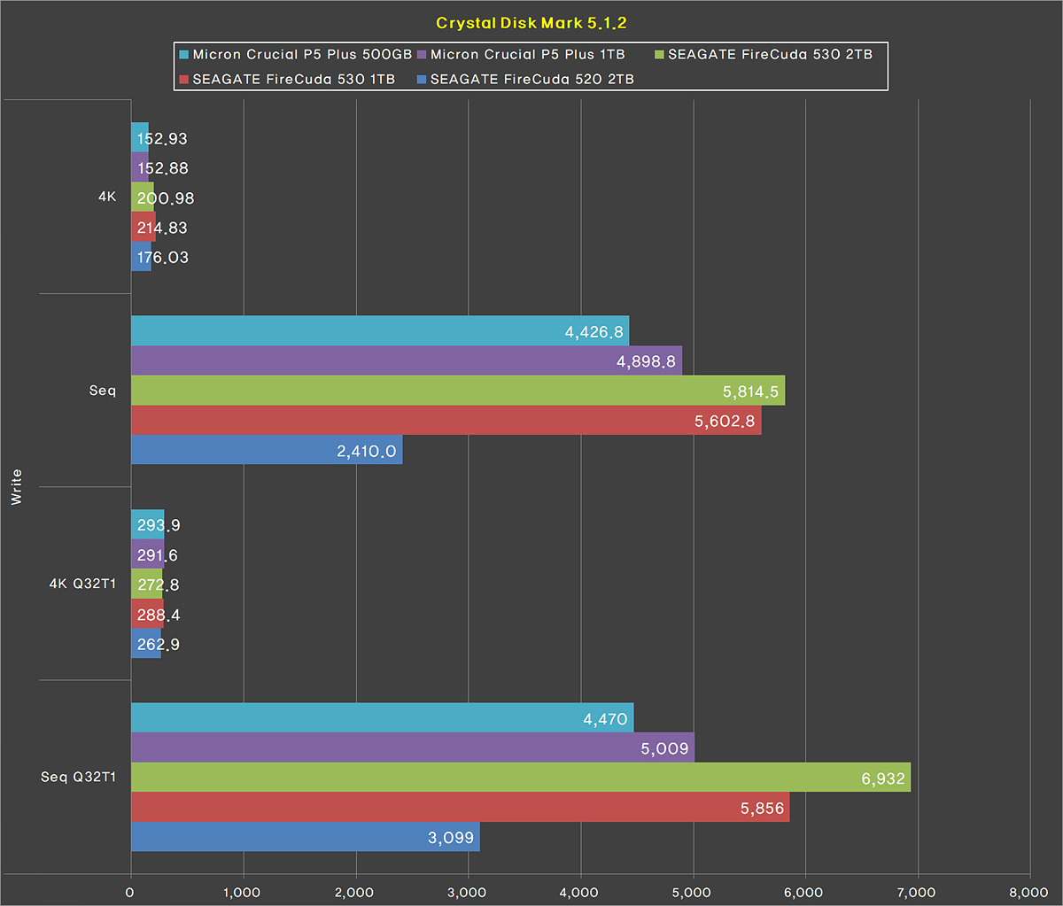 P5 Plus 1TB 제품과 비교해서 읽기는 큰 차이가 없지만 쓰기에서는 차이가 조금 더 벌어졌습니다.