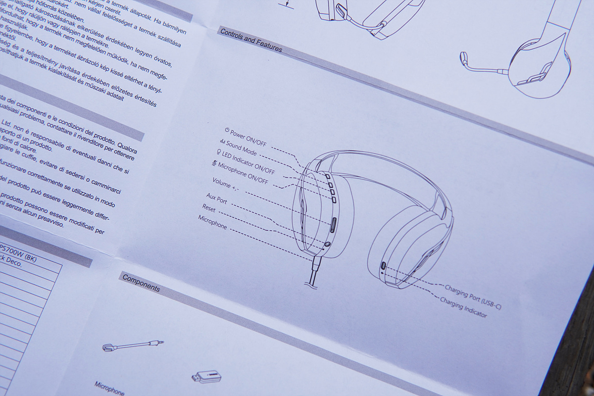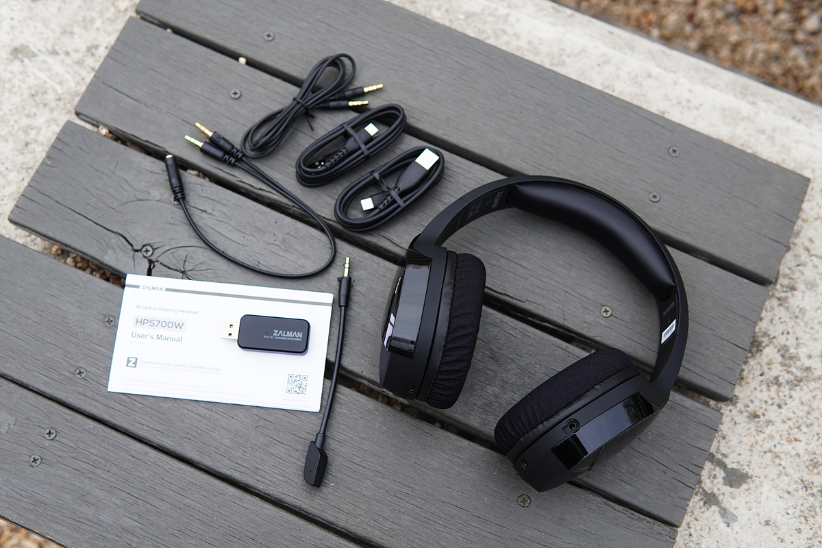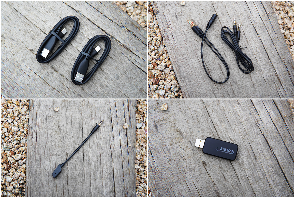 헤드셋, 마이크, 설명서, 전용 수신기(2.4 GHz) 3.5mm 유선 케이블, 4극 -> 3극 변환 케이블 그리고 USB 충전 케이블로 구성품이 제법 많은 편입니다.