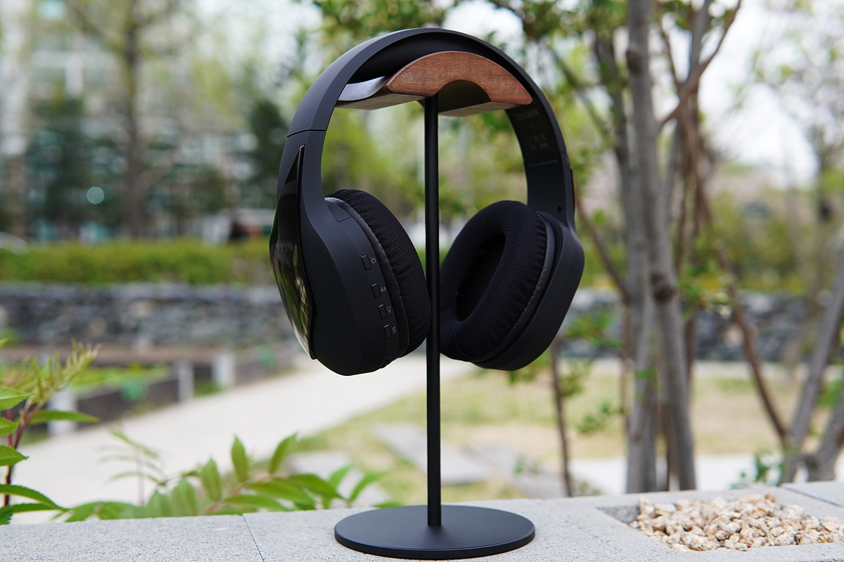 헤드셋의 착용감에 큰 영향을 미치는 무게는 마이크를 포함 298g으로 무선이라는 점을 생각한다면 상당히 가벼운 편이었습니다. 조절 밴드를 벌릴 때 좀 강한 게 느껴지고 틸트로 조절이 되지 않아서 착용감이나 좌우 장력에 대해 걱정을 좀 했었는데 다행히 이 부분이 불편하지는 않았습니다. 정수리가 눌리는 느낌은 조금 있는 편이지만 이 부분 역시 심하지 않아서 단점으로까지 생각되지는 않았습니다. 두 시간 정도 착용을 해도 귀와 정수리가 약하게 눌리는 느낌이라 머리가 큰 사용자들에게도 불편하지는 않을 거라 생각됩니다.