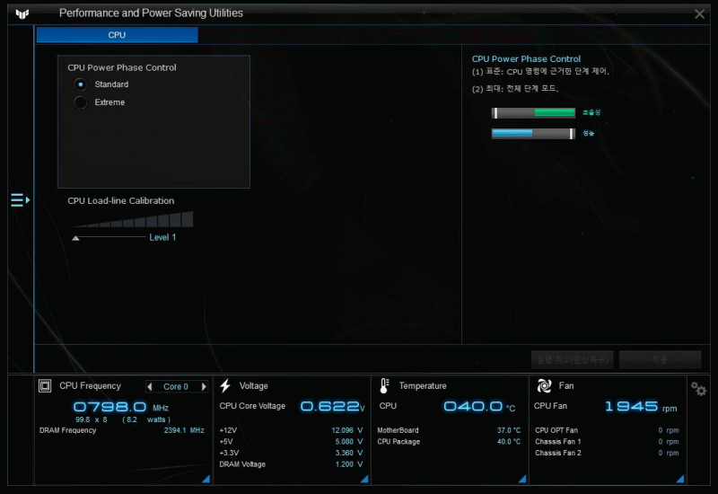 바이오스에서 Q-Fan으로 설정을 할 수도 있고 ASUS AI Suite 3을 설치하면 시스템의 현재 상태와 함께 시스템 상태(온도)에 따라 CPU 쿨러와 케이스에 장착된 쿨러들의 성능(rpm)을 조절할 수 있습니다.
