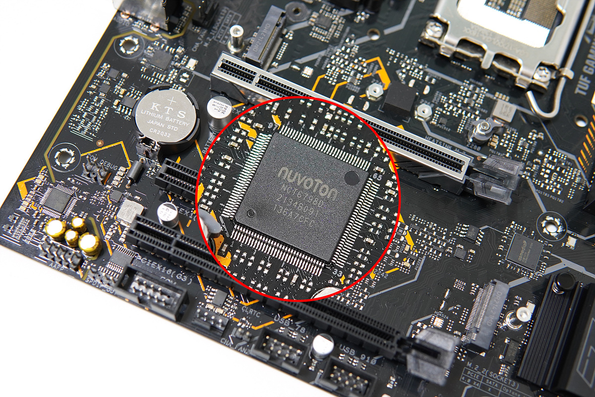여러 가지 하드웨어들의 컨트롤과 모니터링을 담당하는 nuvoTon NCT6798D Super IO 칩셋입니다.