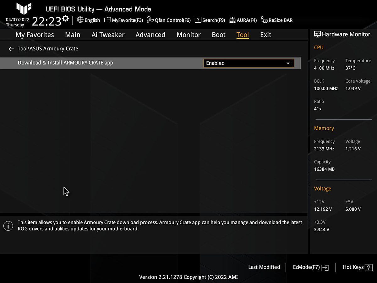 네트워크에 연결이 되면 Armoury Crate를 자동으로 다운로드할 수 있는 안내 메시지가 나옵니다.