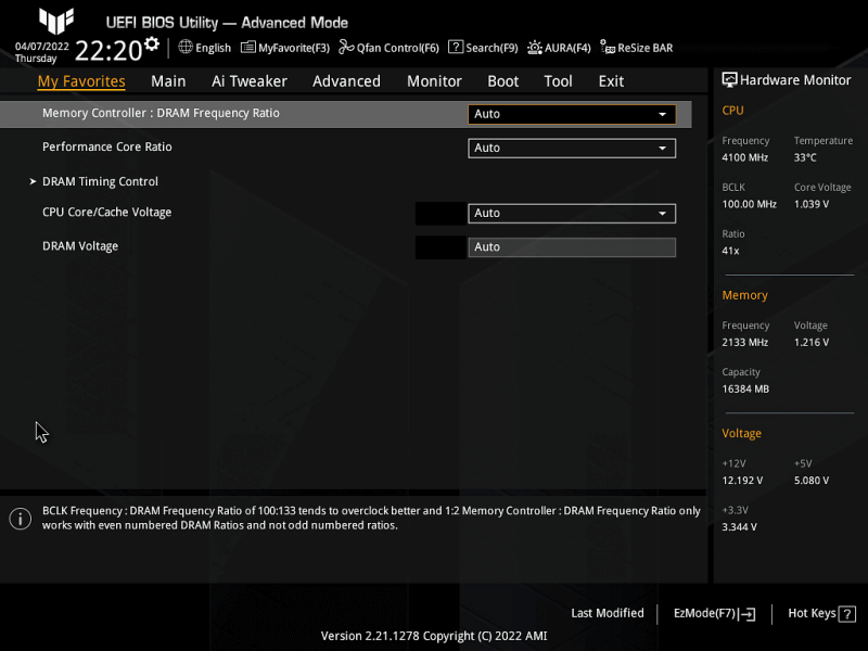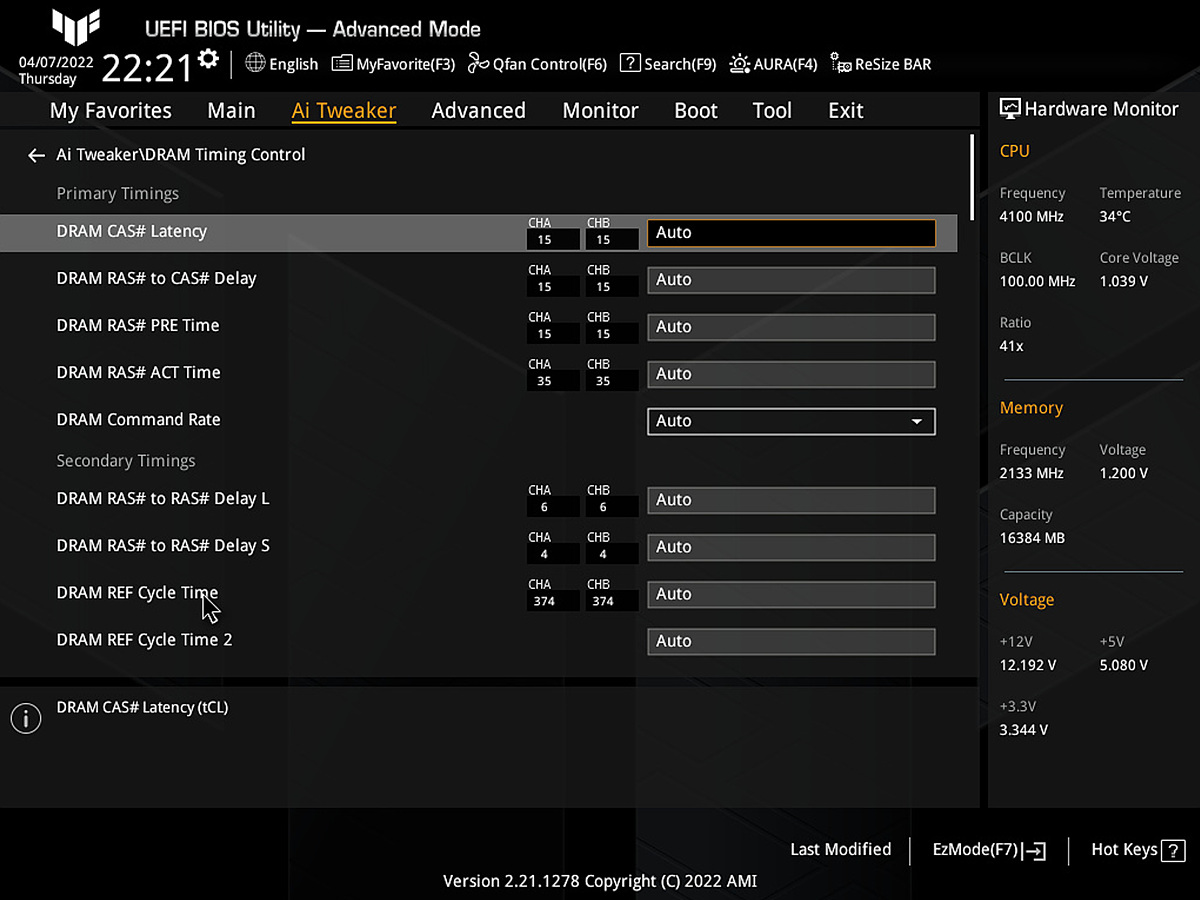 AI Tweaker에서는 메모리의 클럭, 타이밍과 전압 등을 바꿔서 오버클럭이 가능합니다.