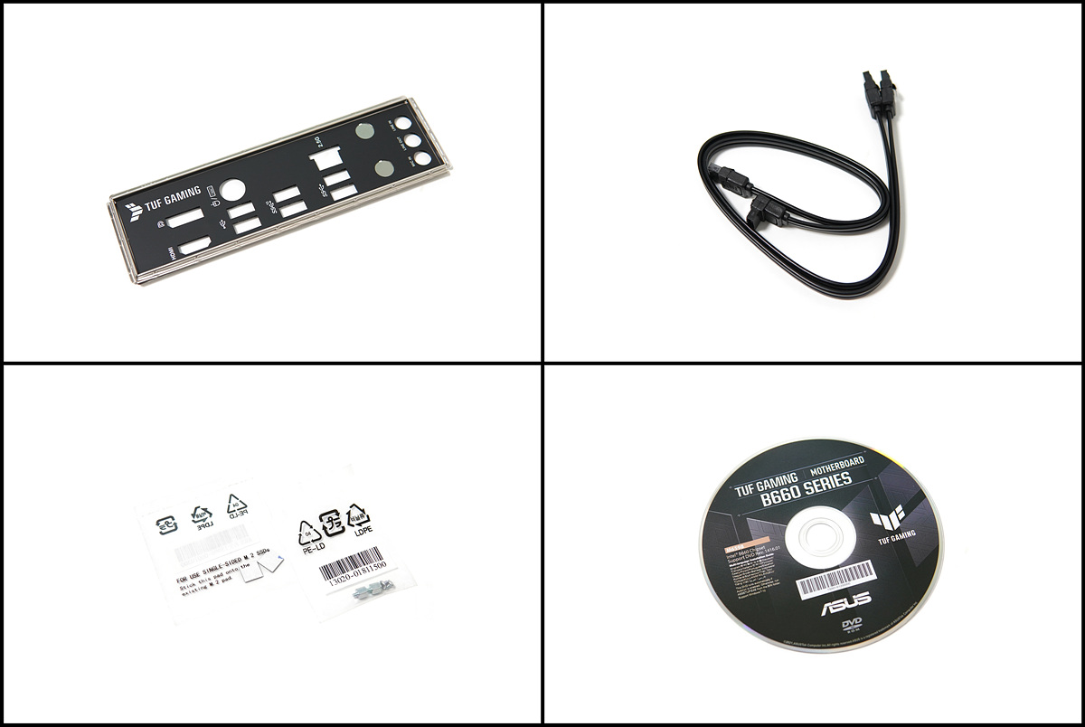 상위 제품(TUF Gaming B660M-PLUS)과의 차이를 두기 위함인지 일체형 패널이 아닌 별도의 IO 패널로 되어있으면 두 개의 M.2 슬롯에 사용할 수 있는 부속품도 포함이 되어있습니다.