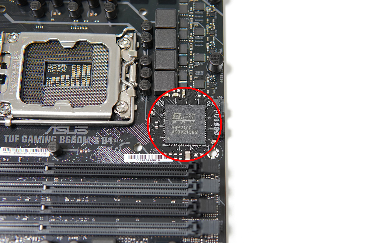 ASUS가 자랑하는 전원부(PWM) 컨트롤러인 DIGI+ VRM(전압 레귤레이터 모듈) ASP2100 칩셋입니다.
