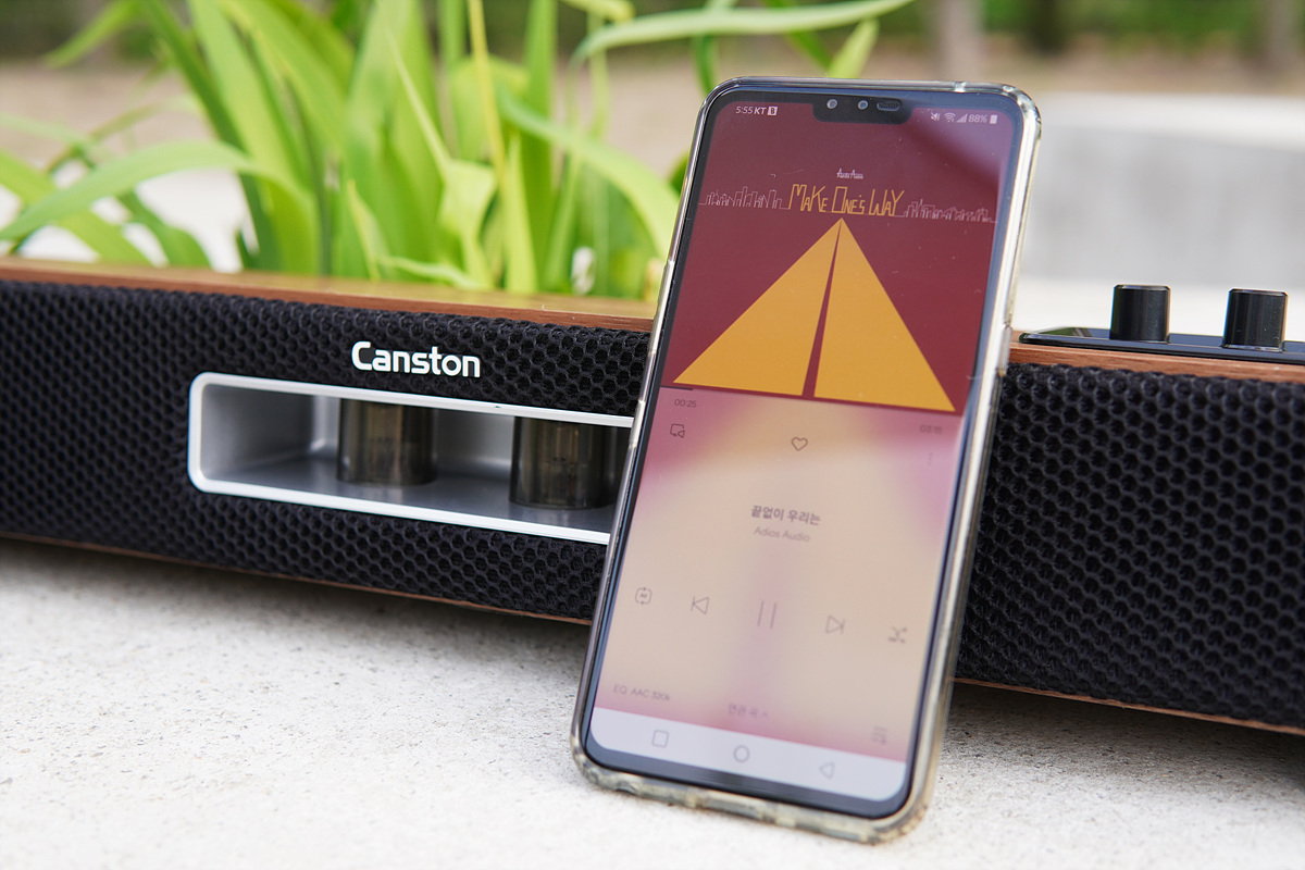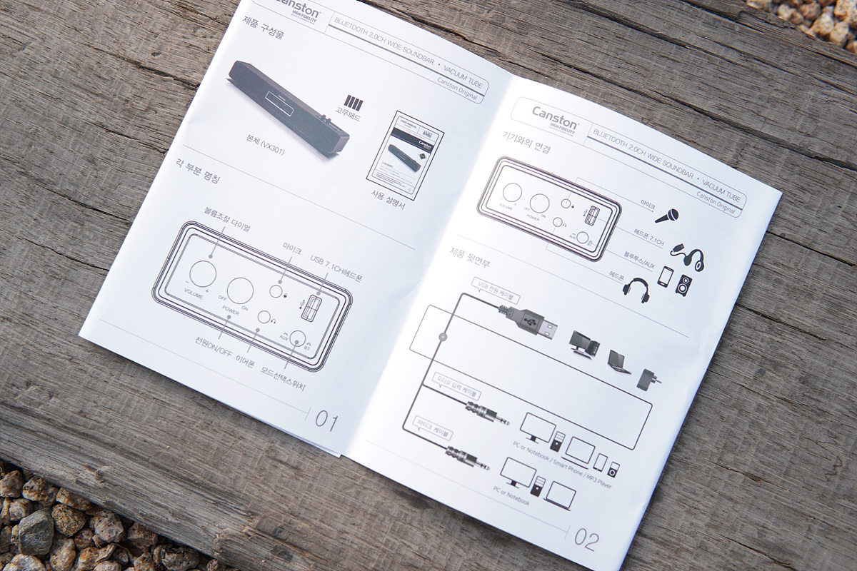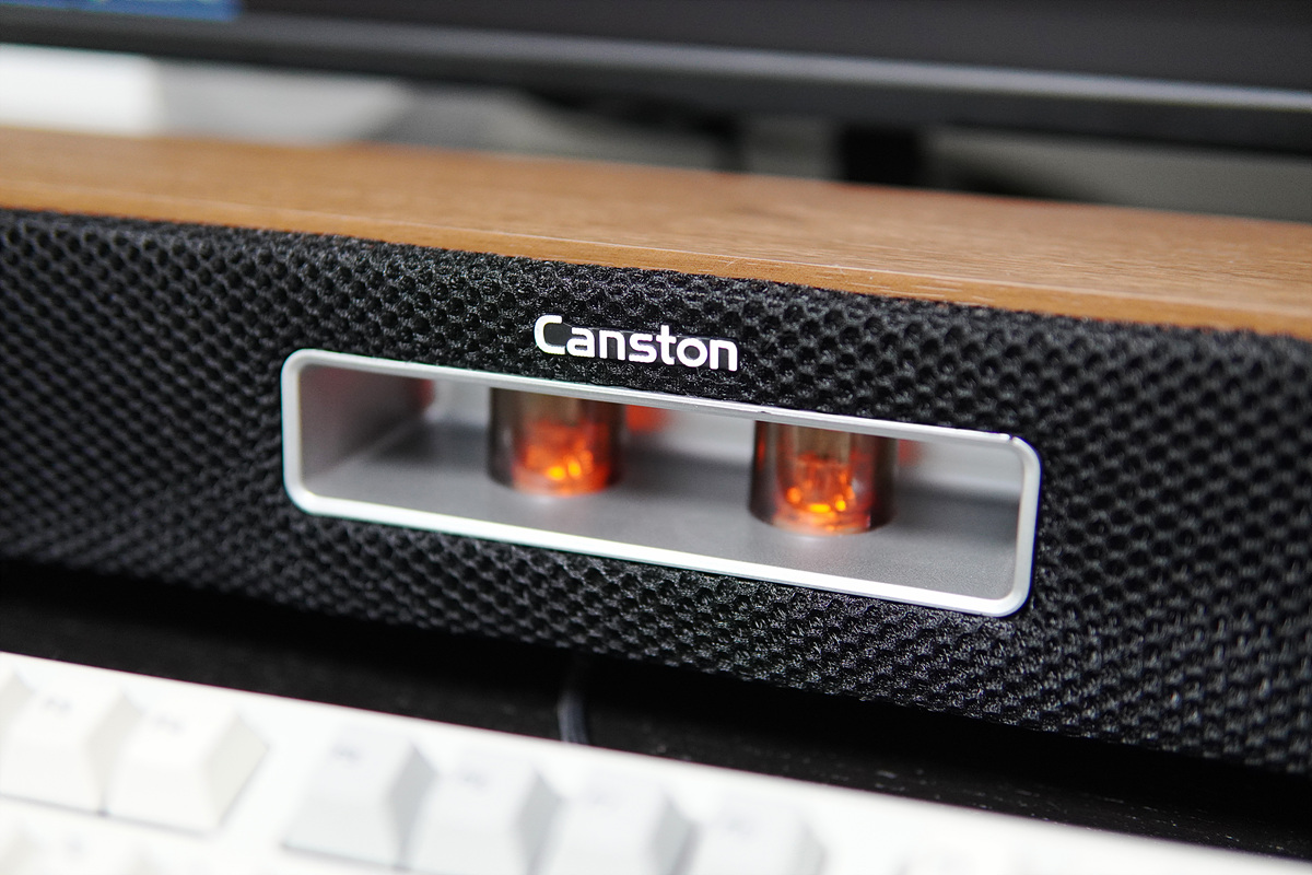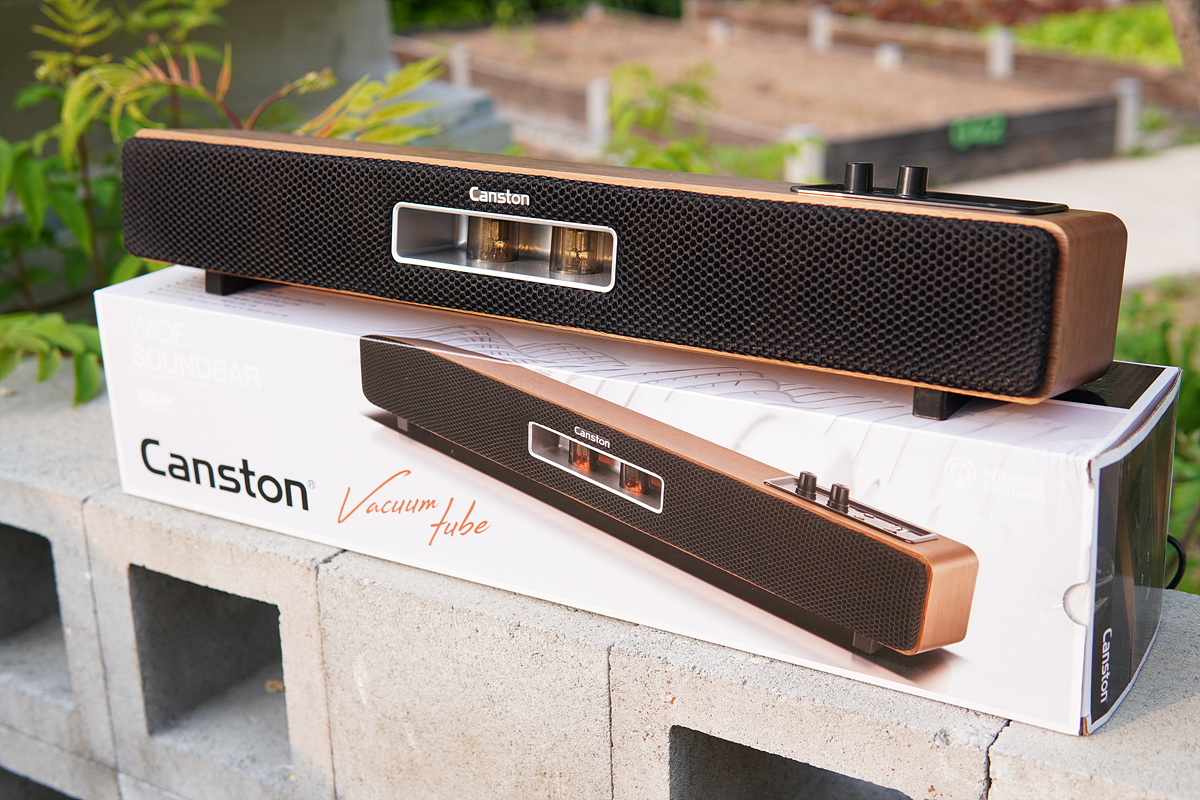 일반적으로 좌우 양쪽에 설치하는 2채널 방식의 스피커와 다르게 모니터 아래에 설치되는 사운드바는 디자인이나 성능보다는 공간 활용에 좀 더 우선을 두게 됩니다. 그래서인지 사운드바는 색을 제외하면 대개 비슷한 모습을 하고 있습니다. 이번 시간에 소개하는 캔스톤 VX301 진공관 사운드바는 제품의 이름처럼 두 개의 진공관(Vacuum Tube)이 장착되어 있어서 기존의 사운드바와 많이 다른 모습을 하고 있습니다.
