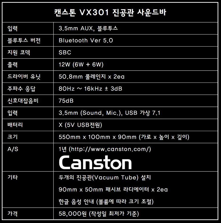 ■ 캔스톤 VX301 진공관 사운드바