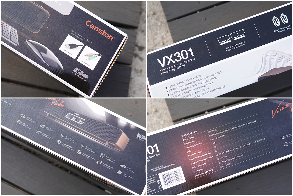 아직도 진짜 진공관(Vacuum Tube)을 사용하는 오디오 기기(앰프)들이 있지만 이런 제품들은 상당히 고가의 제품들이라 일반 사용자들이 사용하는 경우는 거의 없습니다. 진공관이 가지고 있는 특유의 레트로(retro)한 감성 때문인지 요즘은 이를 활용하는 오디오 기기들의 출시가 많아지고 있네요. 캔스톤의 VX301 사운드바 역시 이런 감성적인 부분을 잘 표현한 디자인으로 소비자들을 유혹하고 있습니다. AUX 입력과 블루투스 두 가지를 사용할 수 있어서 PC, 노트북, 스마트폰 등 다양한 기기들에서 사용할 수 있으며 추가로 이어폰, 마이크와 USB 헤드셋을 연결할 수 있어서 기기의 활용도를 더욱 높였습니다.