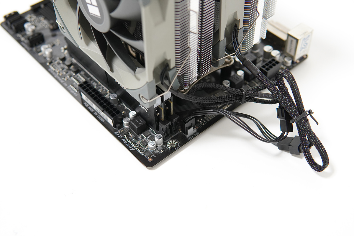 두 개의 케이블을 Y 커넥터에 연결한 뒤 메인보드의 CPU FAN 소켓에 연결을 하면 모든 설치 과정이 끝입니다.