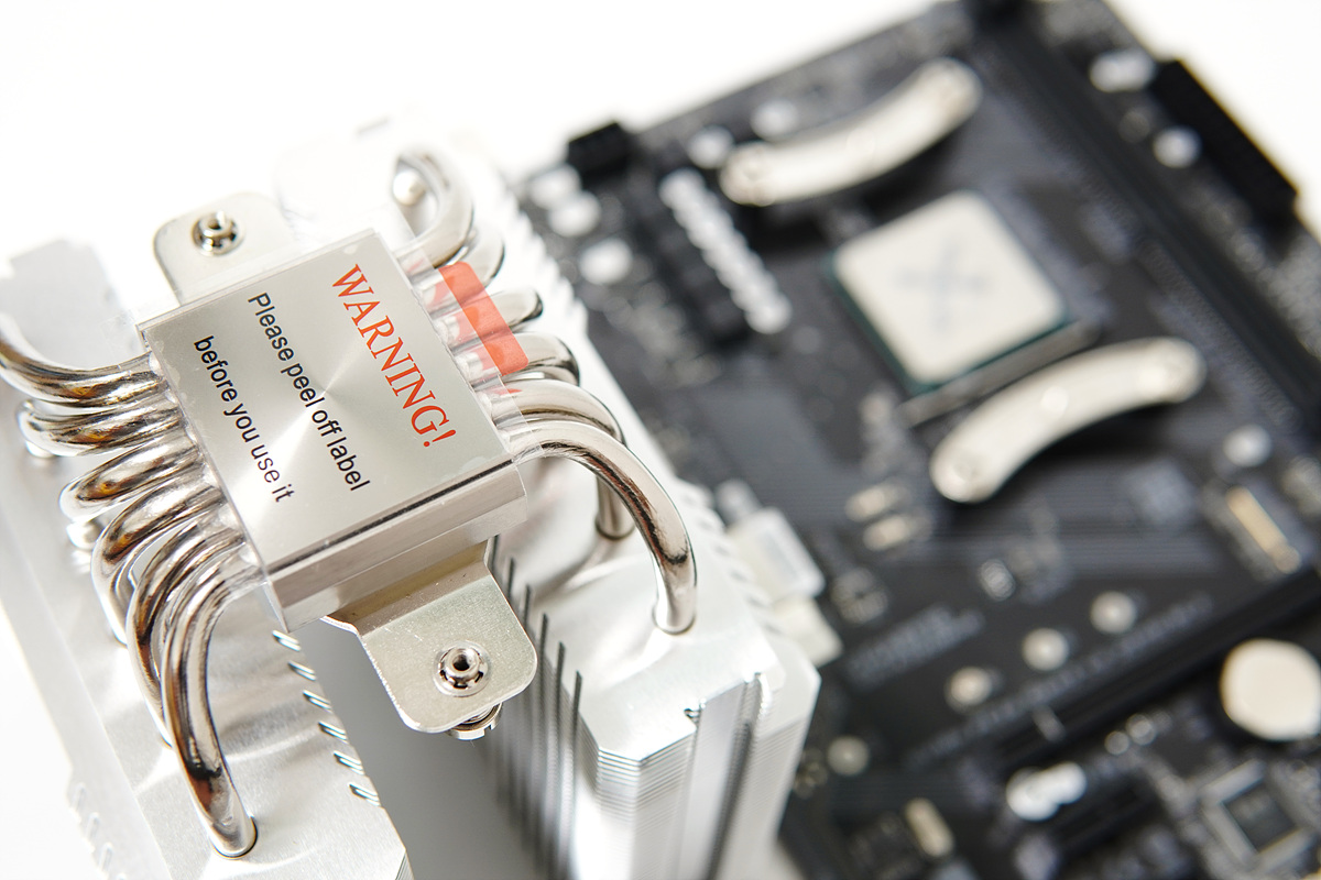 CPU와 맞닿는 베이스, 히트파이프와 히트싱크는 모두 코팅이 되어있습니다. 피어리스 어쌔신 120은 블랙이나 화이트 제품도 있으니 좋아하는 색으로 선택하시기 바랍니다. 베이스 부분에는 조립 전 라벨(보호 필름)을 반드시 제거하라는 문구가 있습니다. 대체 "얼마나 정신이 없으면 저걸 제거하지 않고 그대로 사용할까?"라고 생각할 수 있지만 제법 흔하게 일어나는 사고(?)입니다. 사실 제가 얼마 전에 그랬습니다. ㅜㅜ