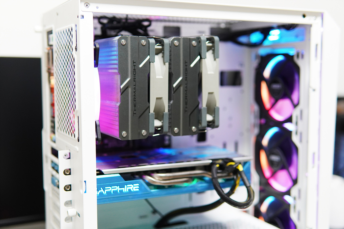 Thermalright Peerless Assassin 120 공랭 쿨러의 특징이자 장점은 듀얼 구조의 큰 방열판을 바탕으로 CPU에 발생되는 열을 효과적으로 관리할 수 있는 점입니다. 두 개의 쿨러 역시 최대 rpm에서도 상당히 조용한 편이라 저소음 환경을 꾸미려는 사용자들에게는 상당히 매력적이죠. 설치에 어려움은 없었지만 설명서가 너무 간단하게 되어있는 부분과 한글이 없는 점이 아쉬웠습니다.