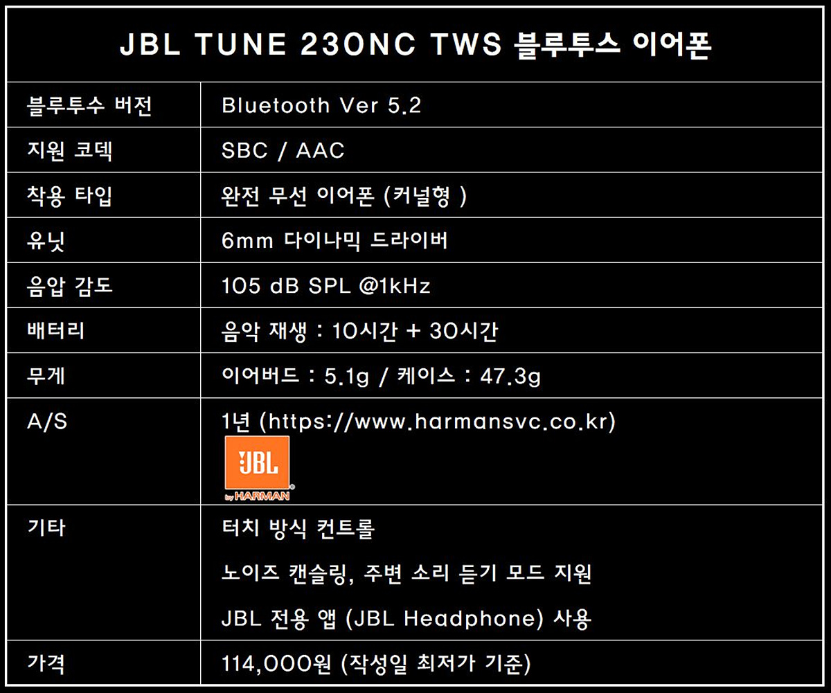 이어폰의 기능뿐 아니라 종류도 많아지면서 자연스럽게 사용자들의 눈높이도 많이 높아졌습니다. 특히나 ANC, 앱 지원, 무선 충전과 같은 기능들은 특별한게 아닌 기본 or 필수라고 여겨질 정도가 되었죠.이번 시간에 소개한 JBL TUNE 230NC는 노캔과 전용 앱을 사용할 수 있어서 이전에 테스트했던 기기들에서의 아쉬움들이 사라졌습니다. (무선 충전이 안 되는 부분은 아직 남아있지만요. ^^)
