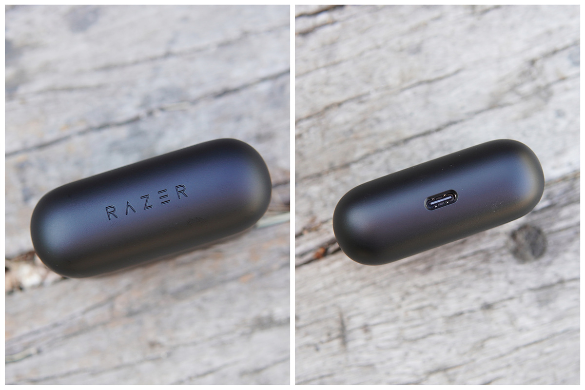 케이스는 위/아래 모두 둥그런 모양을 띄고 있어서 사진처럼 세울 수는 없습니다. 아래(바닥면)에는 Type-C 충전 포트가 있습니다.