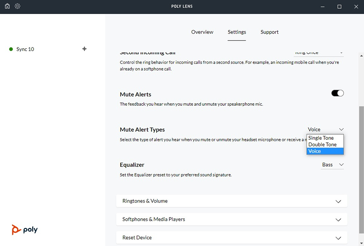 전용 소프트웨어인 Poly Lens는 Windows / Mac 모두 제공되며 홈페이지에서 다운로드할 수 있습니다. 현재 홈페이지에는 Sync10 스피커의 상세 페이지가 없지만 소프트웨어는 통합이기 때문에 10 / 20 / 40 / 60 제품에 상관없이 설치할 수 있습니다.