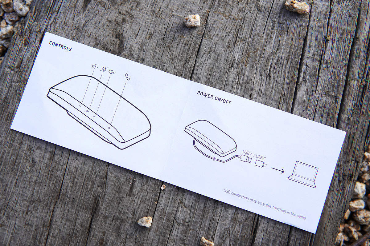 스피커폰 본체, Type-A to C 변환 젠더, 인증서와 설명서로 이루어져 있습니다.