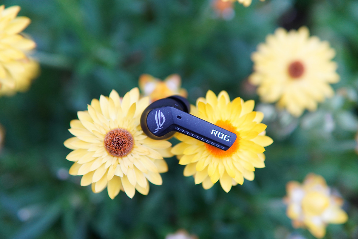 이어 버드는 스템 형태로 되어있으며 통화와 노이즈 캔슬링을 위한 마이크는 이어 버드당 4개로 총 8개의 마이크가 있습니다. 케이스와 마찬가지로 ROG 로고에 LED가 달려있지는 않습니다. 개인적으로는 가장 아쉬웠던 부분 중 하나입니다. 얼마 전 레이저 크로마를 테스트했을 때 이어 버드에 RGB가 나오는 모습이 정말 멋졌거든요. ROG 역시 RGB 감성이라면 어디 가서 빠지는 브랜드가 아닌데 단가 때문인지 다른 이유인지 아쉬운 부분이었습니다.