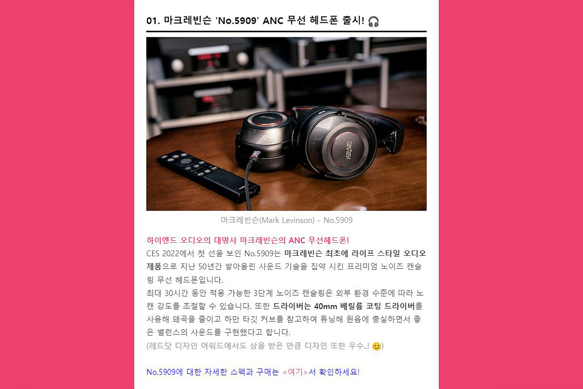 2주 간격으로 최신 음향기기 소식을 모아 보내드리는 '사운드시그널'입니다. 주로 음향 관련 이슈사항,신제품/할인 소식을 전달해드려요.📧 구독하시면, 누구나 '무료' 음향소식을 받아보실 수
