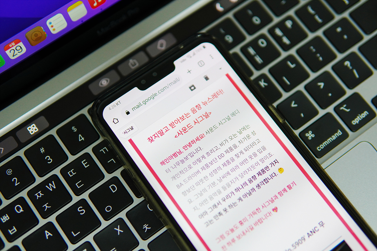 사운드 시그널 뉴스레터의 구동은 아래 링크를 클릭하시면 됩니다. 간단하게 이메일 주소만 등록한 뒤 인증을 거치면 여러 가지 좋은 소식을 접할 수 있고 필요하지 않다면 언제든지 해지할 수 있습니다. 현재 시장의 동향이나 신제품 출시뿐 아니라 음향 지식까지 얻을 수 있어서 정말 추천하는 서비스입니다. ^^