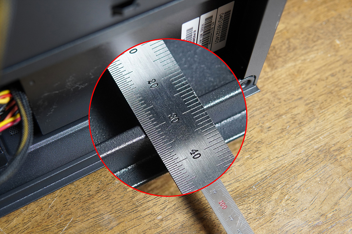 파워와 새시 사이는 약 28mm의 공간이 있어서 필요 없는 선들을 넣어서 정리할 수 있습니다.