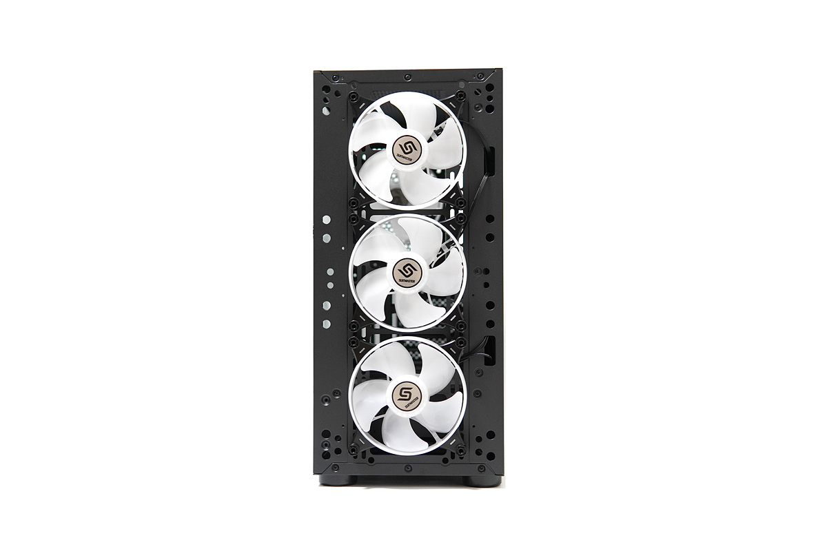 케이스 위쪽에는 수랭 쿨러를 위한 라디에이터를 장착할 수 있으며 최대 120mm 3열(360mm)까지 지원합니다. 앞쪽 역시 같은 크기를 사용할 수 있으며 3열 라이에터를 장착하려면 커버를 분리해야 합니다. CPU 쿨러나 VGA 역시 케이스의 크기 때문에 장착이 안 되는 경우는 없을 정도로 대부분의 제품을 장착할 수 있습니다.