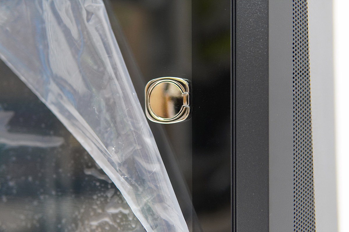 힌지 방식의 스윙 도어로 되어있어서 편리하게 열고 닫을 수 있도록 별도의 손잡이가 있습니다.