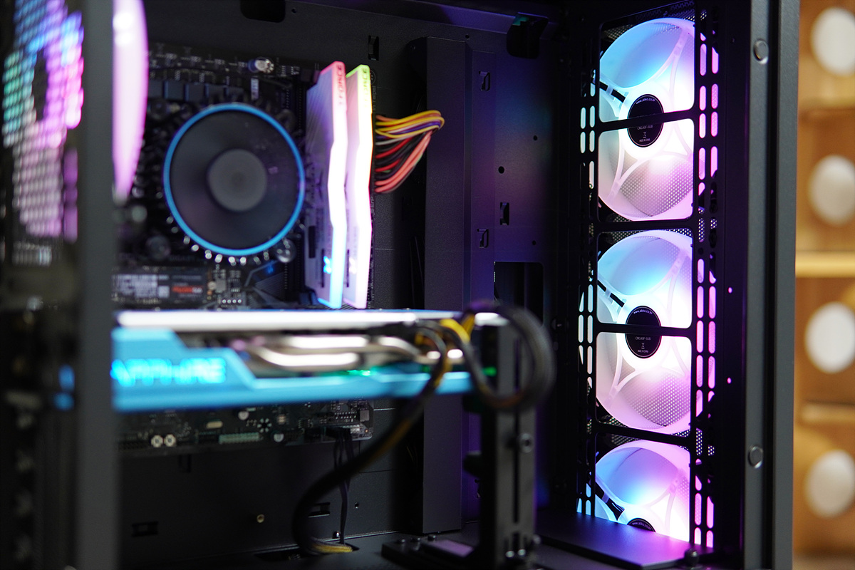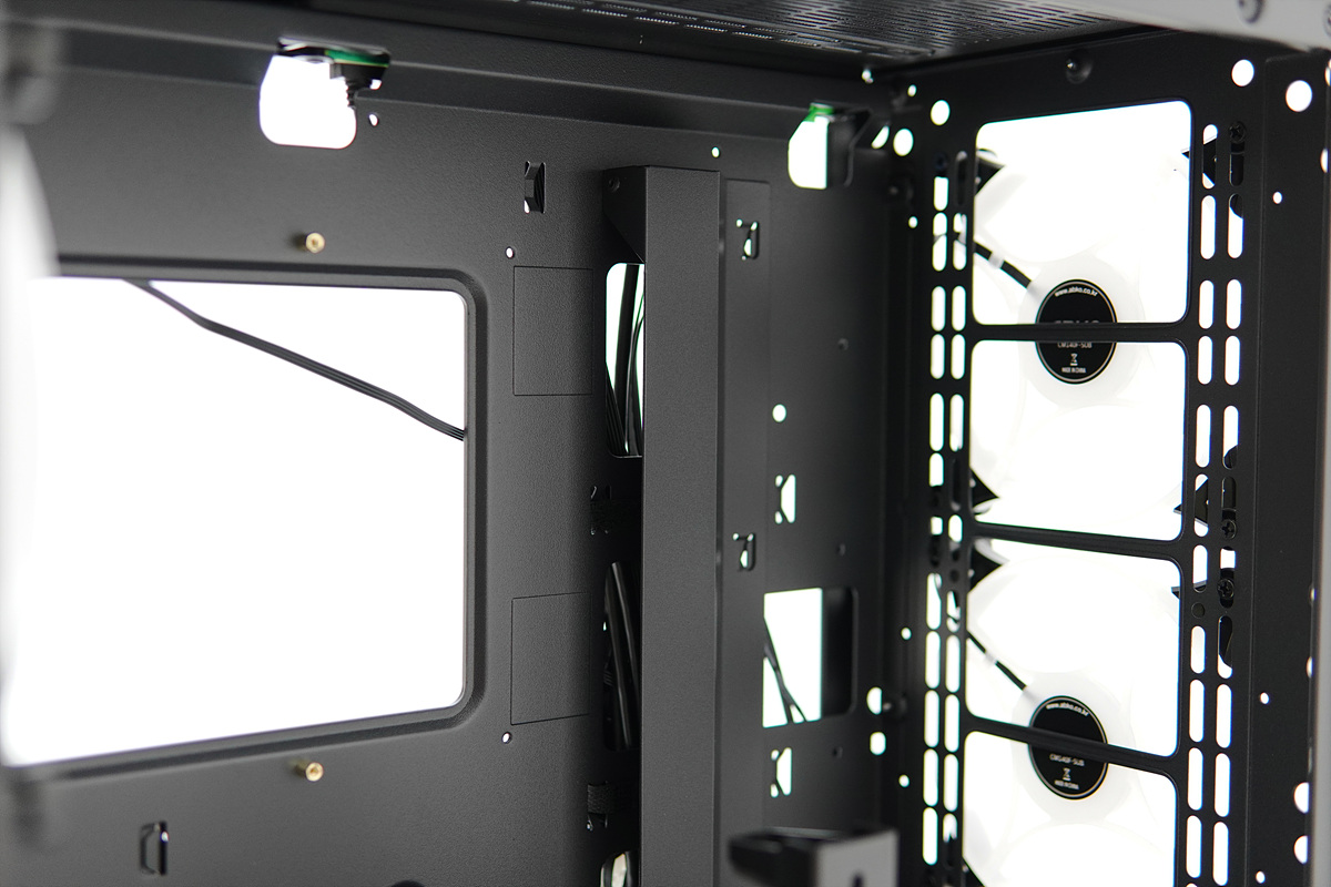 기본 장착된 140mm의 4개의 팬은 RGB 효과뿐 아니라 쿨링에도 좋은 효과를 기대할 수 있으며 좌우 측면에 타공을 한 부분과 커버의 나사를 고정한 부분 역시 칭찬할만한 부분이었습니다. 힌지를 사용한 스윙 도어와 USB Type-C 포트를 제공한 부분 역시 만족스러운 부분이었습니다. "너희들이 뭘 좋아할지 몰라서 이것저것 다 넣어봤어"라고 말하는듯한 느낌이었네요. ^^