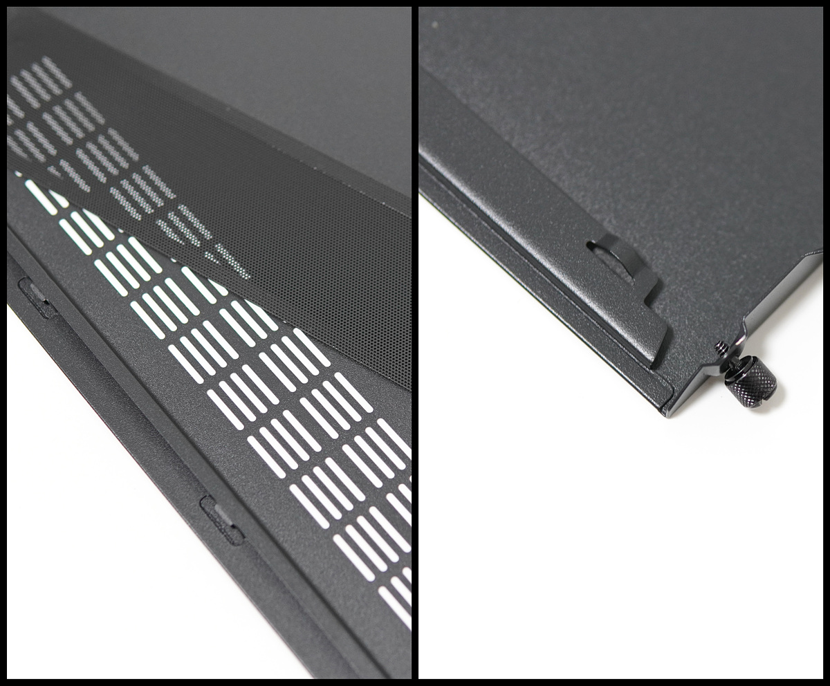 오른쪽 커버의 먼지 필터 역시 마그네틱 방식이며 고정용 나사는 빠지지 않게 커버에 고정이 되어 있습니다. 저처럼 덜렁거리는 사람들은 나사 잃어버려서 시간을 많이 뺏기는데 부분 역시 칭찬해주고 싶네요.