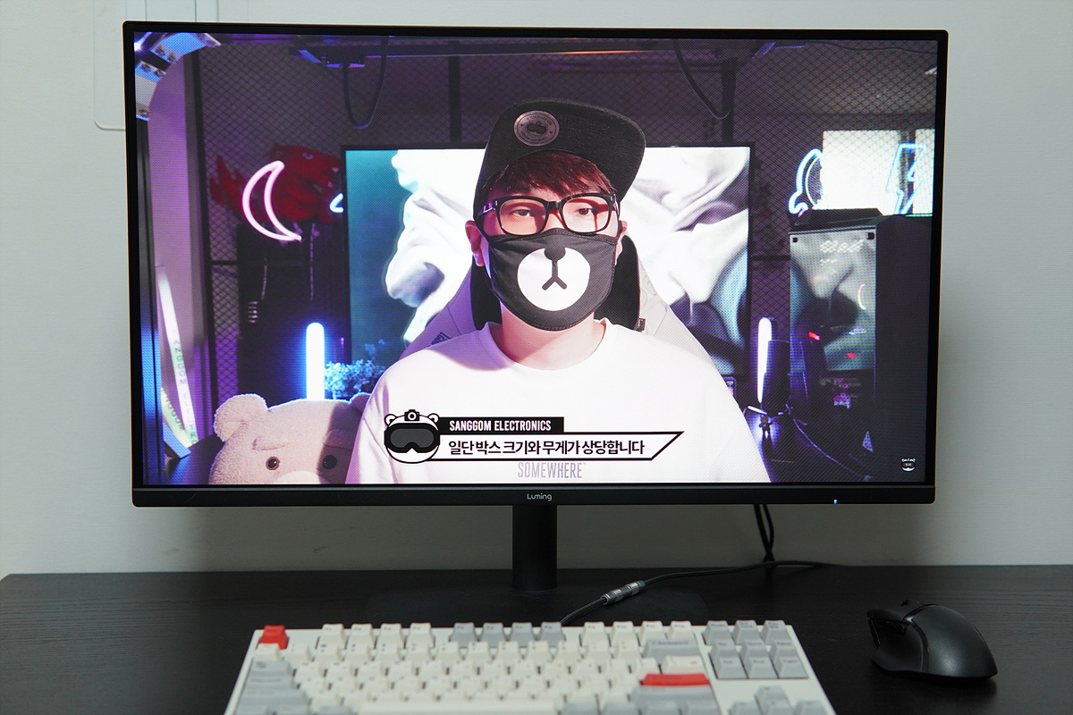 제품의 밝기나 색감 등은 일반적인 수준이었으며 개인적으로는 색온도가 약간 낮게 체감되었습니다. 기본 상태인 표준 모드에서는 밝기가 80으로 세팅되어있어서 실내 사용이라면 30 ~ 40 정도로 사용해도 충분했습니다.