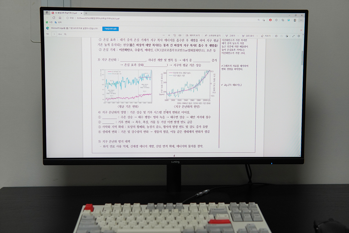 넌 글레어 패널이라 문서뿐 아니라 영상을 볼 때도 부담스럽지 않습니다. ^^