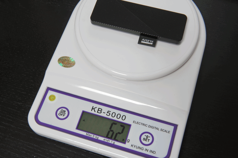 안쪽에 구리 방열판이 있어서 다른 제품들에 비해 조금 더 무거운 편입니다. SSD에서 온도는 꽤 중요한 부분이라 별도로 방열판을 사용했다는 건 칭찬해줄 만합니다. 방열판으로 전달된 열은 케이스의 작은 홈을 통해서 외부로 배출이 되는데 이 홈이 작아서인지 열 배출이 그다지 효율적이지는 않았습니다. (온도는 아래에서 다시 다루겠습니다.)