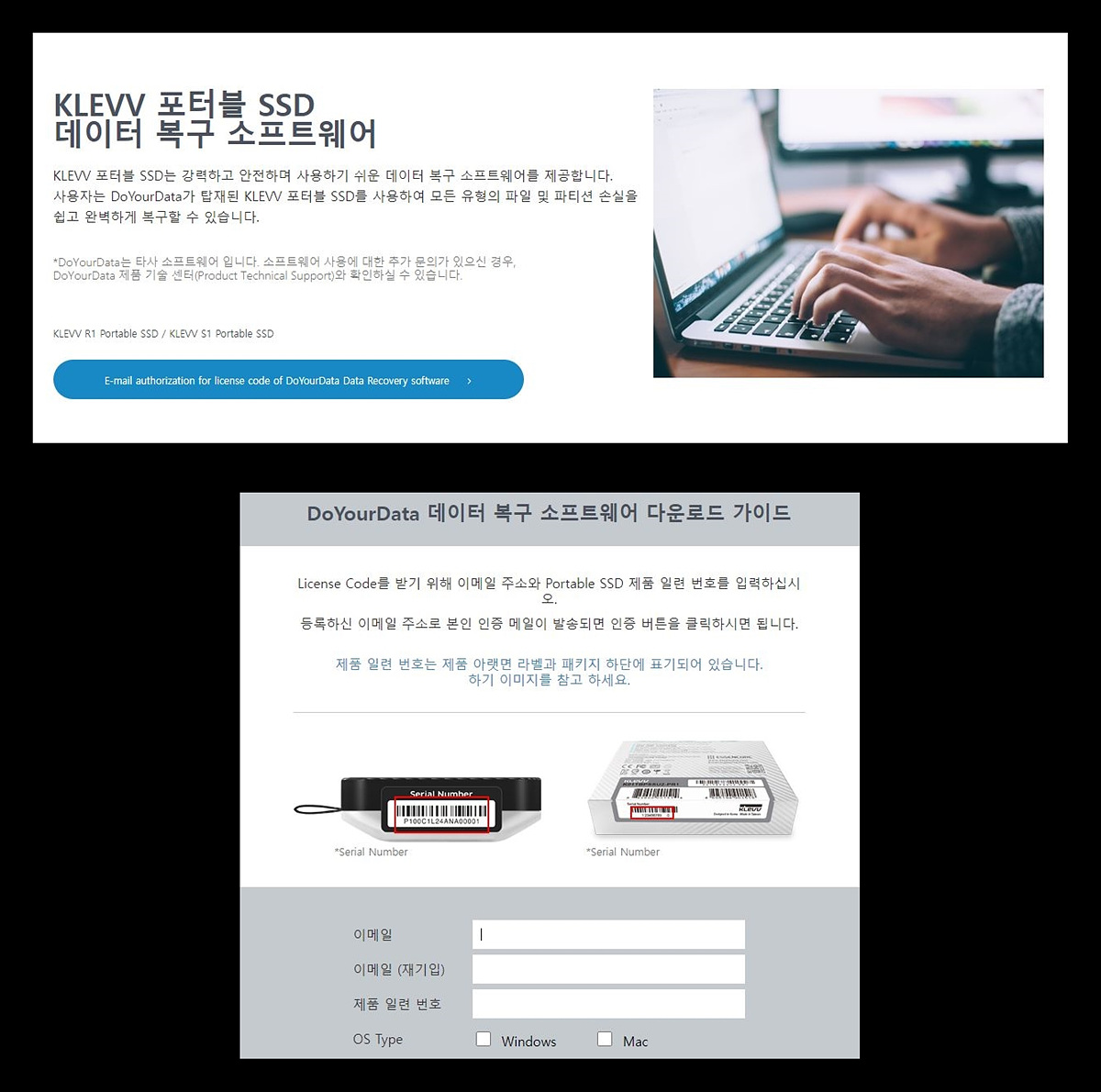 홈페이지에서는 데이터 복구 소프트웨어인 DoYourData를 다운로드할 수 있습니다. 다른 제품들과 다르게 복구 프로그램을 제공한다는 점은 좋지만 아쉽게도 별도의 관리 툴(Tool)이 없더군요. 기본 제공되는 관리용 툴을 사용하지 않는 분들도 있겠지만 대부분의 제조사에서 제공되고 있고 내장 제품에서 사용할 수 있는 프로그램이 있는데 굳이 따로 구분할 필요는 없었을 텐데 왜 이렇게 나눈 건지 궁금하네요.