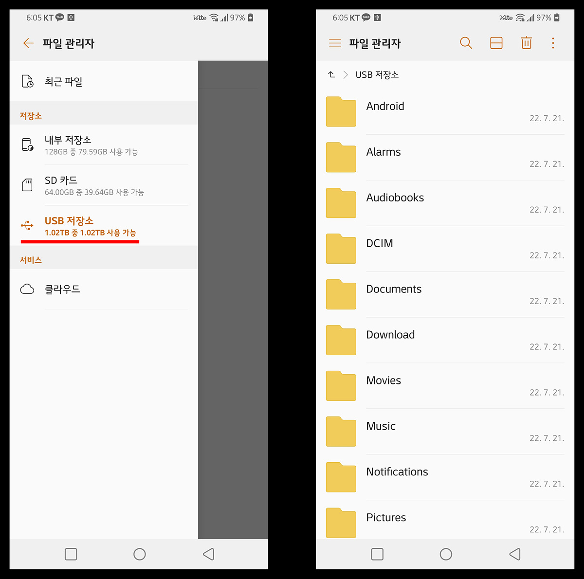 안드로이드를 사용하는 스마트폰이나 태블릿에서도 USB 저장소로 바로 사용할 수 있습니다.